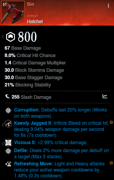 The more debuffs the enemy has, the more damage you do to them from both the Hatchet Skill Tree and from Sin.