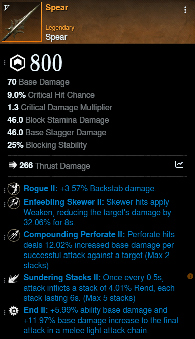 With a mainhand Hatchet, Keen Berserk is the most important ability so you have more time at Empower Cap. With an optimized team, there is no need to take Accumulated Power on Hatchet, so you can opt for the increased Base Damage from Against All Odds. With only 3 players in Catacombs it will be more important to have multiple sources of Crowd Control, which is why we take Sweep instead of Cyclone on Spear. With spear as an offhand, there is no need for Refreshing Jabs, so we can replace it with Deep Wound upgrade on Skewer.